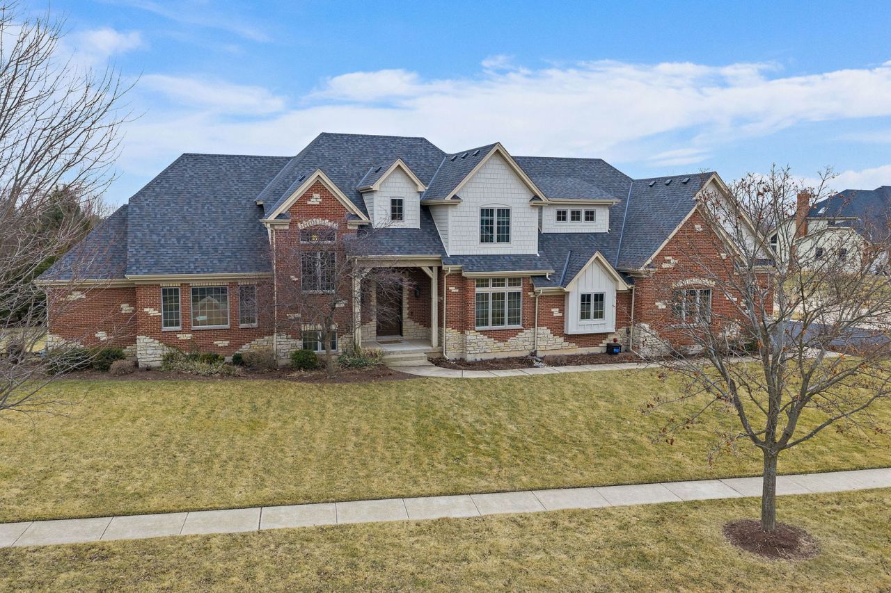Luxurious 4-bedroom home with nearly 5,000 square feet of living space, beautifully situated on a half-acre corner lot in sought-after Hampshire Hills. The inviting entryway opens to a formal dining room highlighted by stunning coffered ceilings, setting the tone for the elegant details found throughout. The living room features soaring cathedral ceilings, a dramatic floor-to-ceiling stone fireplace, and an abundance of natural light that fills the space. The chef's kitchen offers both style and function with stainless steel appliances including double ovens and a separate gas cooktop, a large extra deep island with breakfast bar, prep sink and built-in microwave, 42-inch cabinetry with crown molding, granite countertops, and a spacious eating area-perfect for everyday living and entertaining. A convenient first-floor laundry room includes cabinets, countertop space, and a sink. French doors lead to a versatile flex room ideal for a private office or den, with a secondary staircase that provides direct access to the theater room upstairs. The desirable main-level primary suite offers a relaxing retreat with a sitting area, walk-in closet, and spa-inspired bath featuring dual vanities, a whirlpool tub, and a large walk-in shower. Upstairs, all bedrooms are generously sized, including a second primary suite with a walk-in closet and private en-suite bath. Two additional spacious bedrooms, a hall bath, and a versatile loft currently used as an office provide plenty of room for family or guests, along with a large family room/game room and an impressive theater room complete with projector and screen. The unfinished English basement offers the potential for over 2,300 square feet of additional living space and already includes a fireplace and rough-in for a future bath. Outside, relax on the patio overlooking the professionally landscaped yard. Ideally located near schools, parks, restaurants, and with easy access to major highways, this exceptional home offers the perfect blend of luxury, space, and comfort.