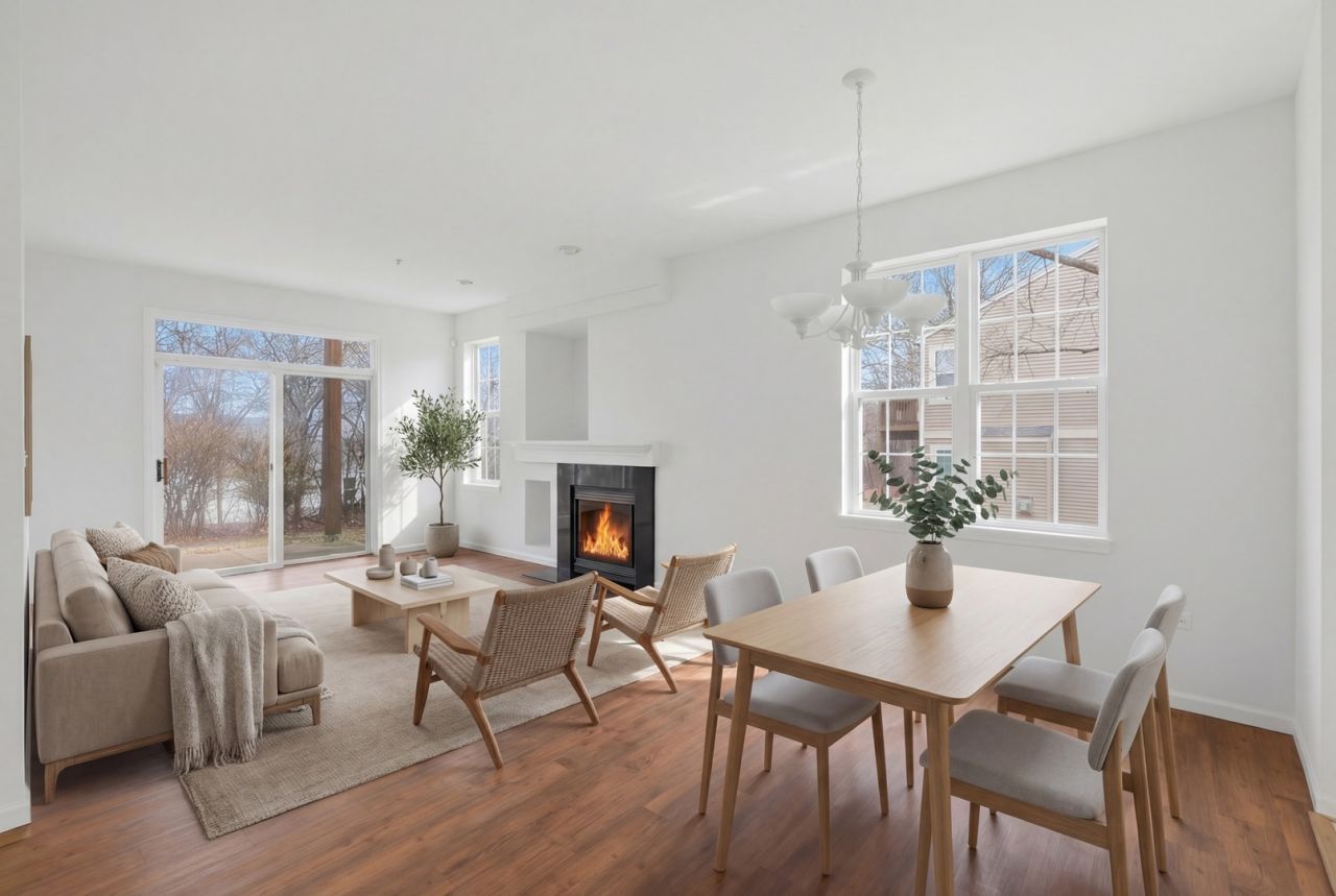 Rarely available first-floor corner unit townhouse, updated prior to listing with fresh paint throughout (walls, ceilings, doors, trim, and baseboards) and new carpet in both bedrooms. Featuring 2 bedrooms and 2 full bathrooms, this home offers an open-concept layout with large windows and a spacious living room with fireplace. Enjoy a private patio with peaceful, tree-lined views. Additional highlights include a separate laundry room and a one-car attached garage. Conveniently located near shopping, dining, and major routes.