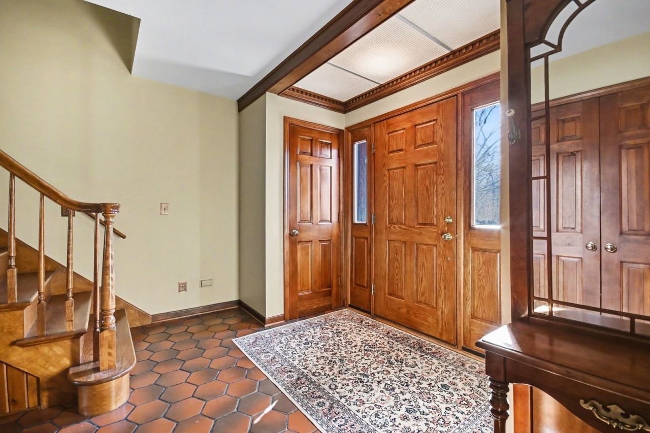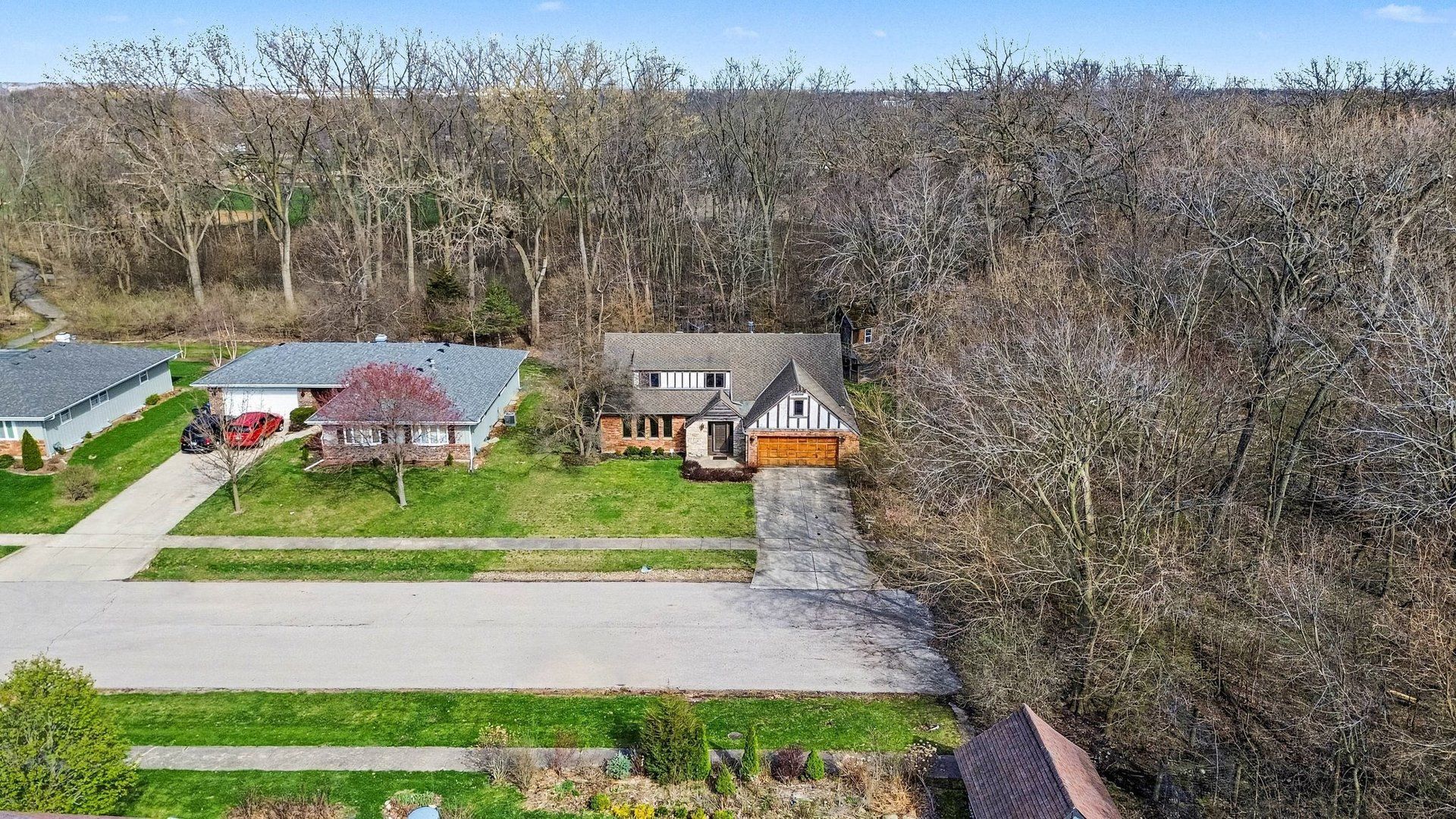 Tucked at the end of the street, this custom home sides and backs to wooded Park District land, offering a private, natural setting. Brick and stucco exterior adds timeless curb appeal. Inside, hardwood floors in select rooms and volume ceilings create an open, airy feel. Spacious family room can accommodate large furniture and has lovely views. Primary bedroom with vaulted ceilings and private bath. Bring your ideas and make this home your own. No FHA, or VA. Property is priced to sell as is.