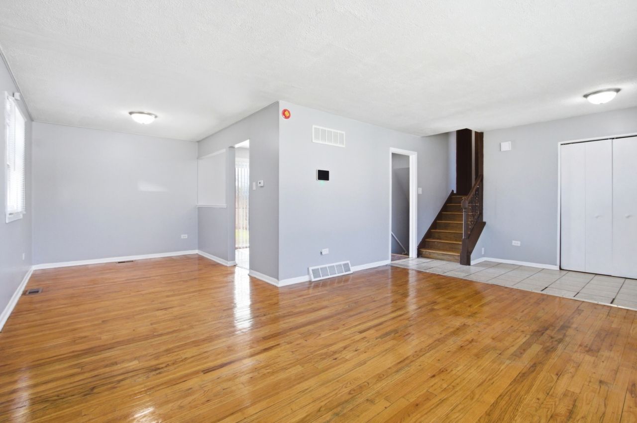 Modern and move-in ready 3 bedroom, 1 1/2 bath split level in beautiful South Holland. Newer siding on the exterior. Updated home with refinished hardwood floors, freshly repainted inside. Newer kitchen has 32 espresso cabinets/new countertops. All of the bedrooms are located on the 2nd floor with 18x12 primary bedroom with 2 large closets. Finished lower level has family room, 1/2 bath and laundry room.
