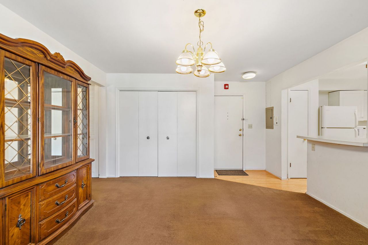 With a few cosmetic updates, this 2-bedroom, 1-bath first-floor unit offers great potential to make it your own. The spacious kitchen features white cabinetry, ample counter space, and a breakfast bar that overlooks the dining and living areas, creating an open floor plan ideal for everyday living and entertaining. The second bedroom, located on the opposite side of the unit from the primary bedroom, features double doors and works well as a den, office, or guest room. The primary bedroom is generously sized at 16' x 11'. Laundry hookup is available in the unit, though the current owners utilize the convenient laundry and storage located directly across the hall. Enjoy the subdivision amenities, including walking paths, a pond, and a pool. Conveniently located near Route 53 and I-90 for easy commuting.
