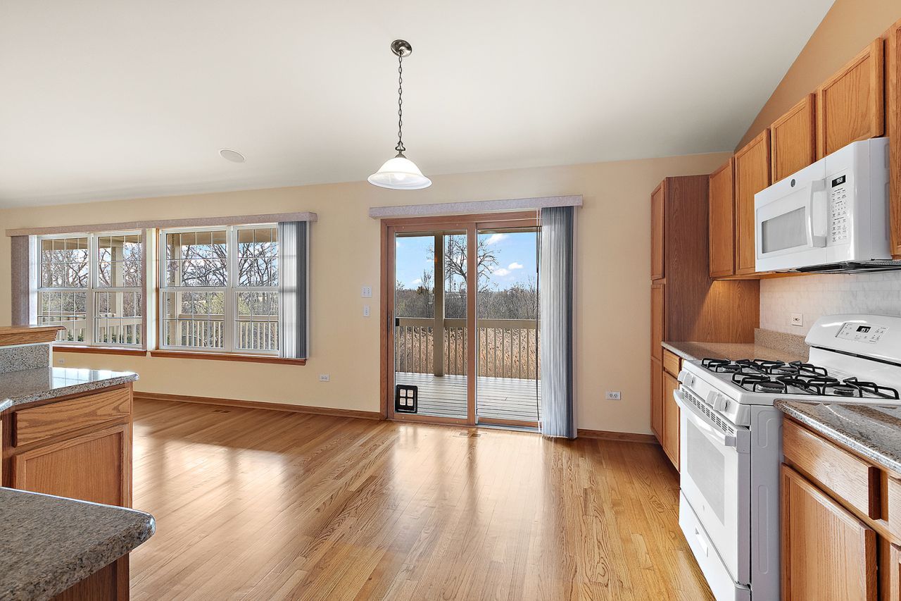 Welcome to this spacious and beautifully maintained 3-bedroom, 2-bath townhome style condo, located in the Millennium Lakes subdivision of Tinley Park. Offering approximately 2,100 square feet of living space, this home features a bright and open floor plan perfect for both everyday living and entertaining. The main level boasts a stunning combination of hardwood floors and vaulted ceilings throughout the kitchen, dining room, and living room, all enhanced by an abundance of natural light. The kitchen is equipped with granite countertops, a stylish backsplash, and a dedicated dining area, seamlessly flowing into the adjacent dining room and living room. The primary bedroom includes a generous 12x6 walk-in closet and direct access to a shared full bath with dual sinks. An additional bedroom is conveniently located on the main level. The lower level offers a large family room with a cozy gas fireplace, a third bedroom, full bath, and a laundry/utility room, providing excellent space for guests, recreation, or a home office. Step outside to enjoy serene pond and grassland views from not one, but two outdoor living spaces: a 27x8 covered concrete patio on the ground level and an equally spacious covered wood porch above, perfect for relaxing or entertaining. Complete with a 2-car attached garage, Newer A/C, New Roof, New Carpets and Fresh Paint. Ideally located near dining, shopping, fitness centers and Metra Station, with easy access to I-80 and I-57, and just minutes from downtown Tinley Park. A perfect blend of comfort, space, and convenience!